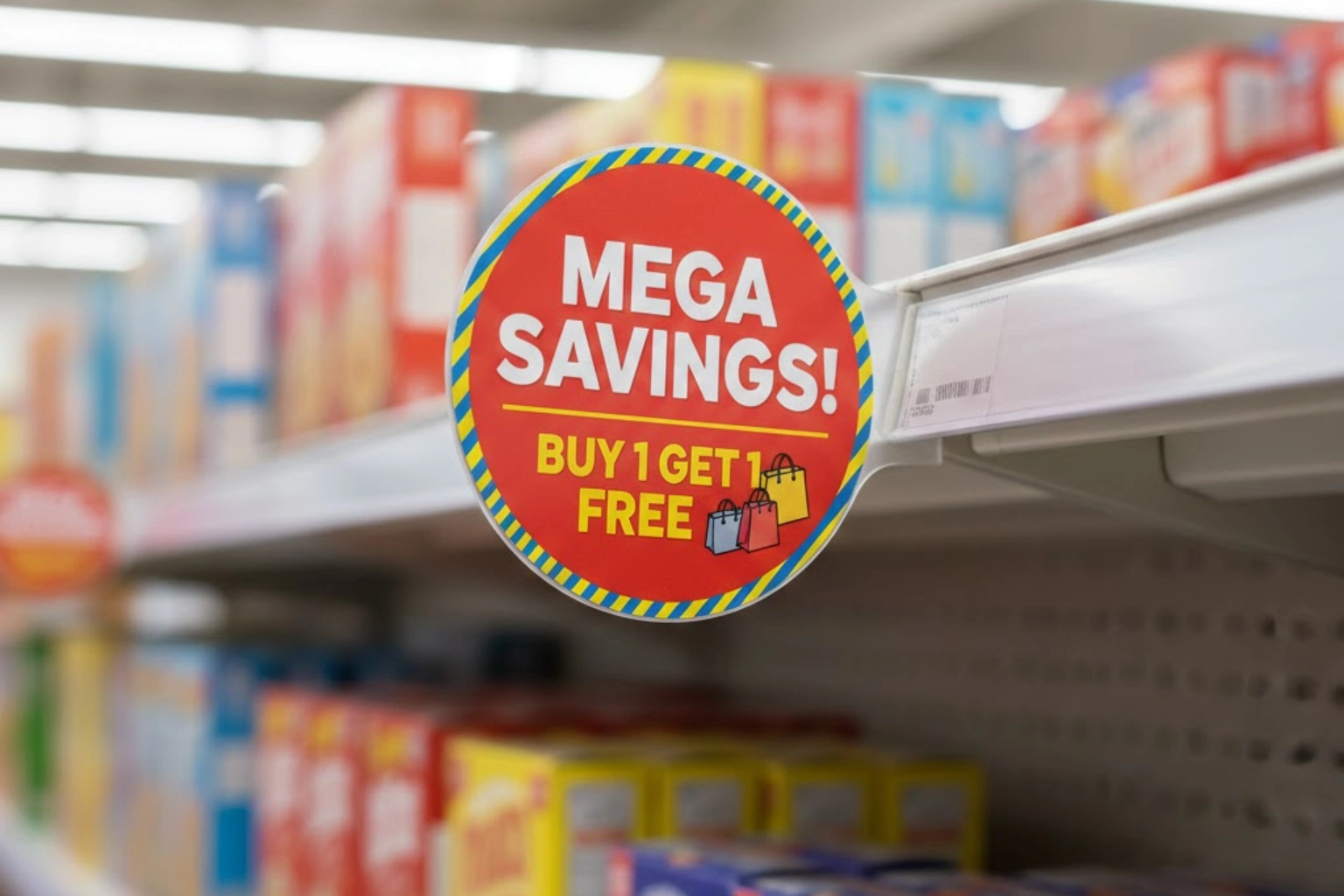 Retail environments are filled with competing visual elements. Standard shelf labels and signage often blend into the background, making it difficult for promotional messages to stand out.